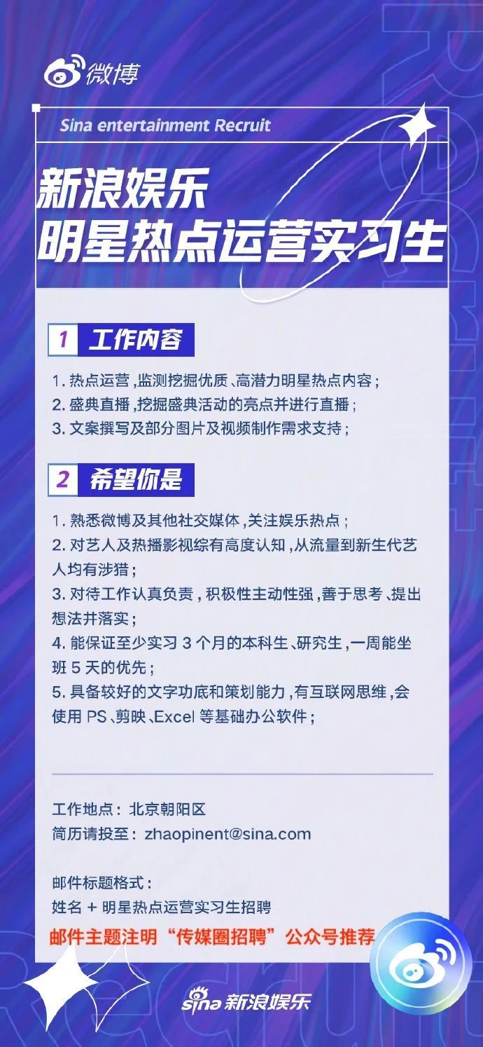 就业指导丨新浪娱乐招聘明星热点运营实习生!