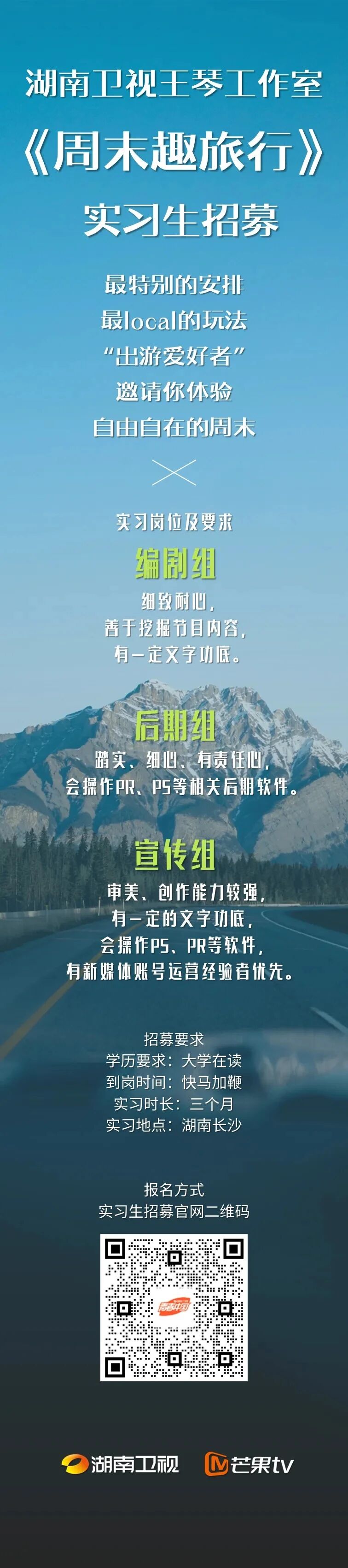 就业指导丨湖南卫视王琴工作室《周末趣旅行》招聘实习生