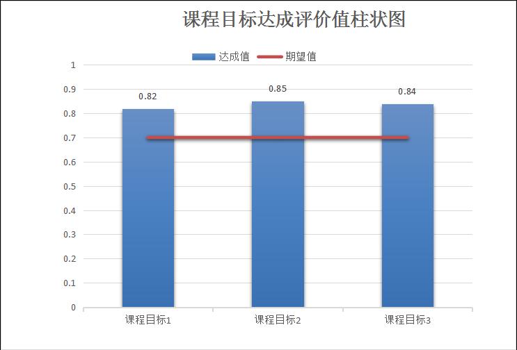 五、课程考核成绩评价值计算方法是:课程分目标达成值=对应的各评定方式的实际平均分/目标分值×权重之和。整体课程目标达成评价值为课程分目标达成评价值的最小值乘以权重(0.7)。