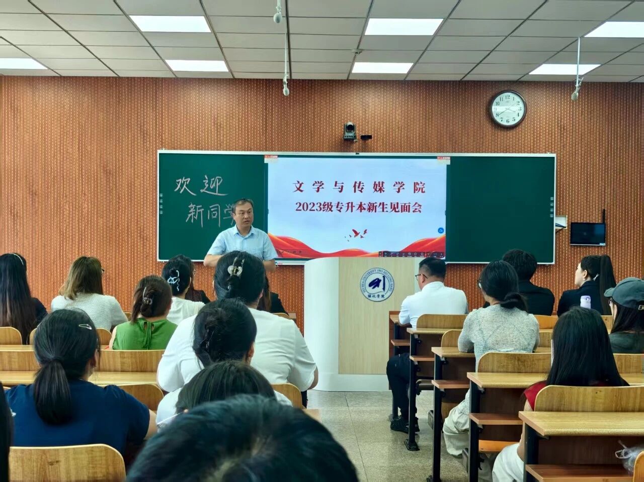 8月27日下午,千亿球友会在汇文楼313教室召开2023级专升本新生见面会。党总支书记王子鸣出席会议并讲话,2023级辅导员于小庆主持会议,四位代班及2023级专升本全体新生参加会议。