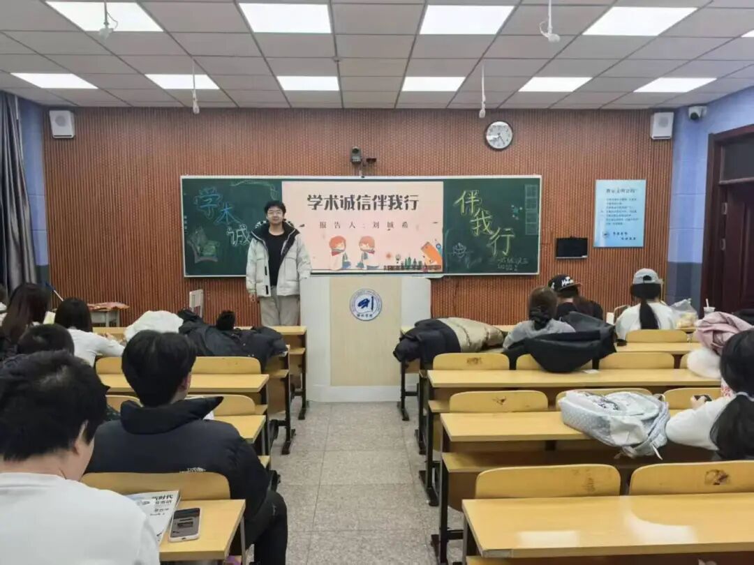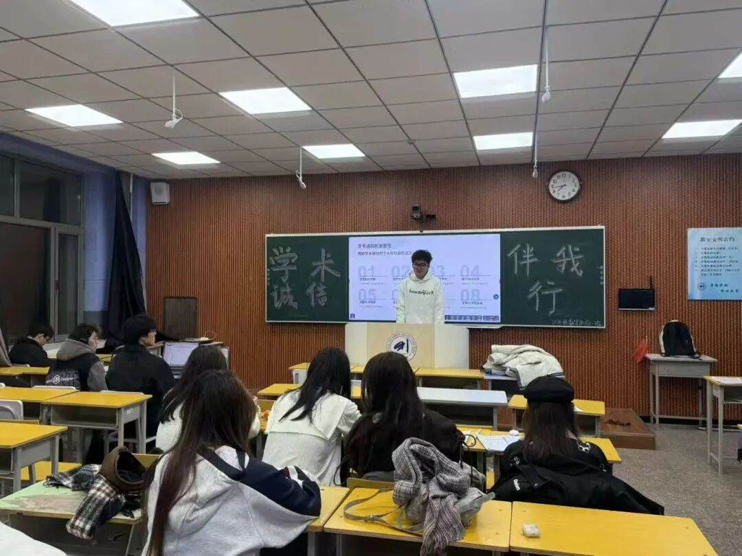 本次班会形式丰富多样,有的班级由班干领学国家及学校层面相关文件,助力同学明晰学术边界,规避不端行为;有的班级通过播放学术诚信主题的短视频,直观展现学术不端行为带来的严重后果,引发同学们的深刻反思;有的班级组织学术诚信知识竞赛,以趣味问答的方式,加深同学们对学术规范和道德准则的理解。在班会讨论环节,同学们积极发言,纷纷表示将严格遵守学术诚信原则,在今后的学习和研究中脚踏实地、严谨治学,共同营造良好的学术氛围。