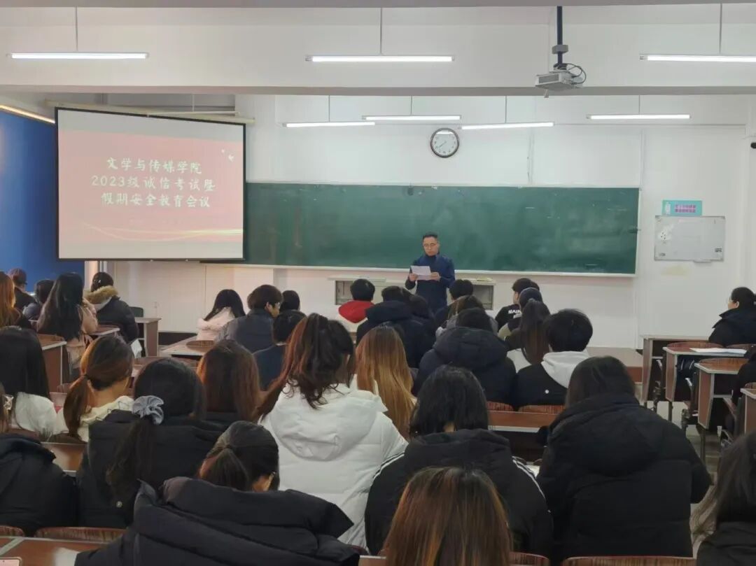 12月10日下午,千亿球友会于汇文楼624教室召开2023级诚信考试暨假期安全教育大会。本次会议由2023级辅导员于小庆主持,2023级全体学生干部及寝室长参加会议。