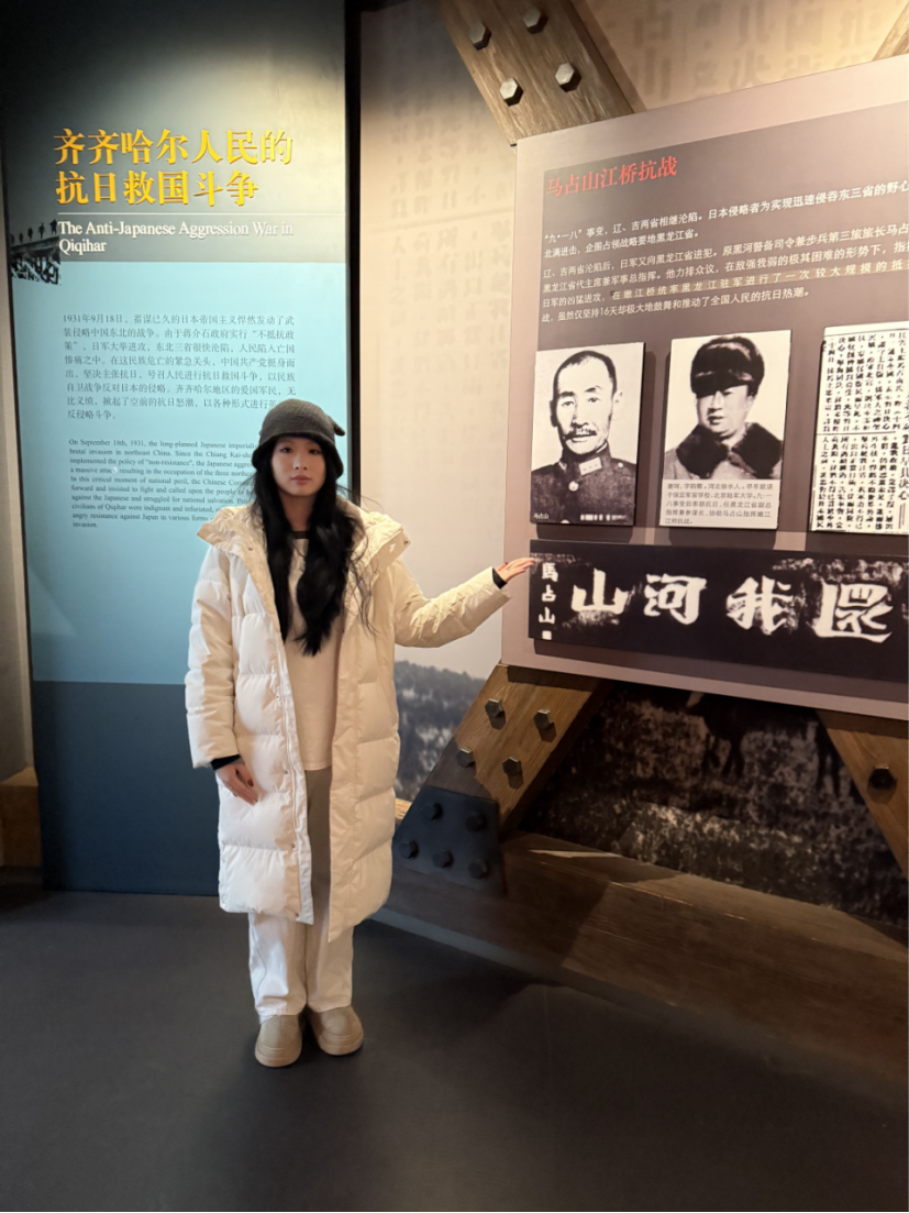 参观结束后,她又重温了《赵一曼》、《东北抗联》等红色经典进一步加深了对这座城市红色历史的理解。作为新时代青年,她将把这份红色精神融入未来的学习与生活,勇担时代使命,在实践的沃土中扎根生长。