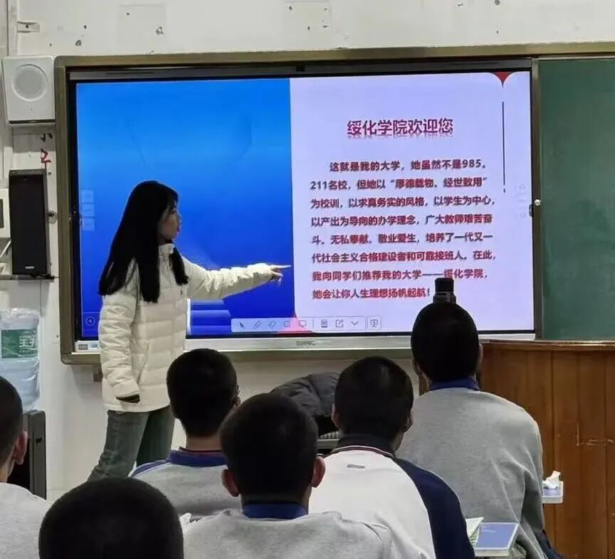 宣讲最后,她勉励学弟学妹们把握当下、奋力追梦。此次实践她不仅为母校学子送去经验与祝福,也感受到了母校温暖,她期盼更多青冈学子考入绥院,携手书写属于他们的新篇章。