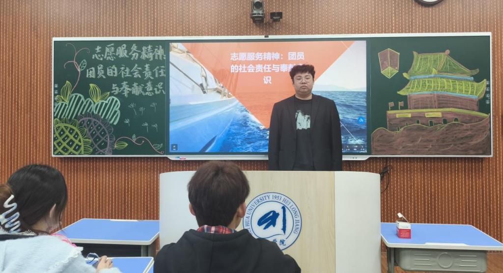 第一讲围绕志愿服务精神:团员的社会责任与奉献意识展开讲解,杨宏宇讲解了“奉献、友爱、互助、进步”的志愿精神核心内涵,阐明志愿服务是团员履行社会责任、践行奉献意识的重要途径。课程结合身边志愿实践案例,让入团积极分子明白要主动投身公益服务,从点滴小事践行初心,将个人成长融入社会服务,以实际行动彰显青年先锋作用,树立服务他人、奉献集体的意识。